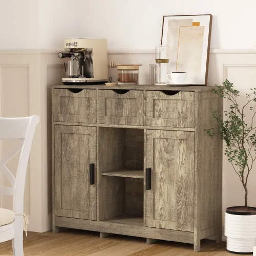 - Multifunctional Cabinet: This multifunctional storage cabinet serves various purposes. It can function as a buffet cabinet, conveniently storing utensils and food. Additionally, it can transform into a cozy coffee bar cabinet, allowing you to enjoy leisurely coffee moments in the afternoon. Moreover, it serves as a practical storage solution for organizing miscellaneous items in the living room and bedroom. Whatever your needs, this versatile cabinet is sure to meet your expectations.