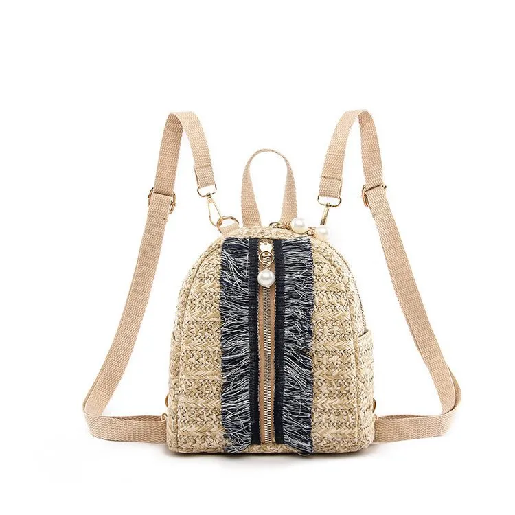Straw bag fashion woven backpack
