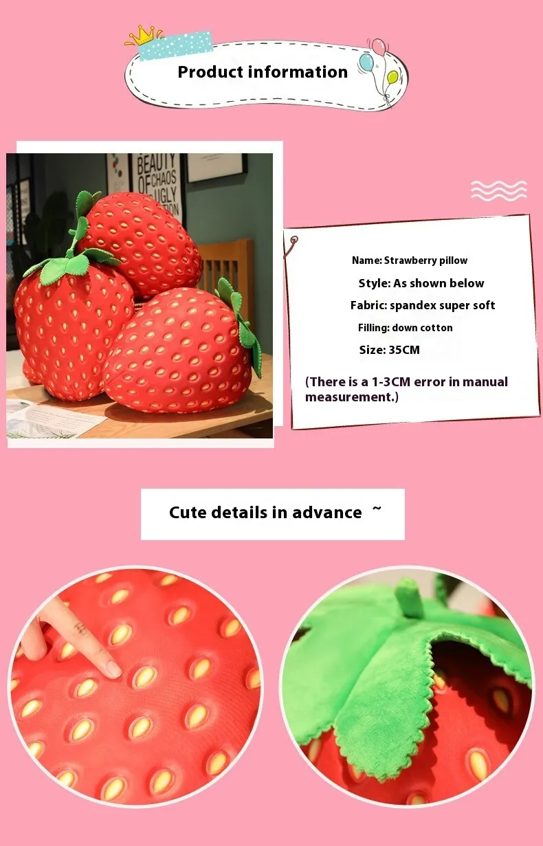 Bring charm and comfort to your living room with the Strawberry Fruit Pillow Living Room Sofa Doll. This adorable and multifunctional pillow adds a whimsical touch to your decor while offering cozy support for lounging. Perfect for homes in New Zealand, this fruit-themed pillow is ideal for enhancing the ambiance of your living space or gifting to loved ones.
