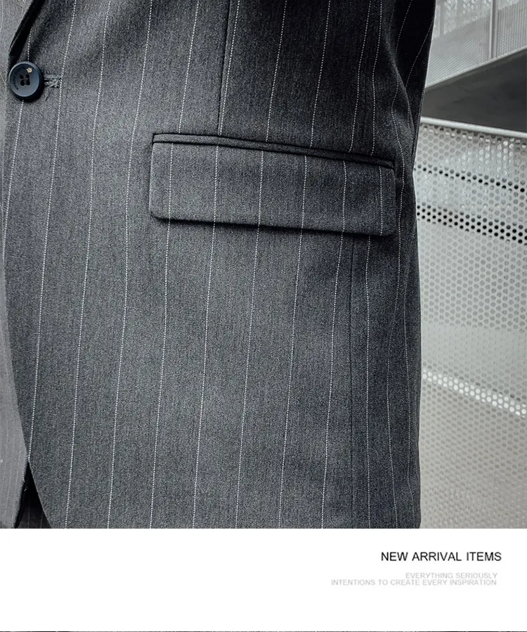 The Striped Suit Men’s Korean Style Small Suit is perfect for a wide range of settings, from formal business meetings to semi-formal gatherings. Its modern yet classic style ensures it adapts effortlessly to any environment.