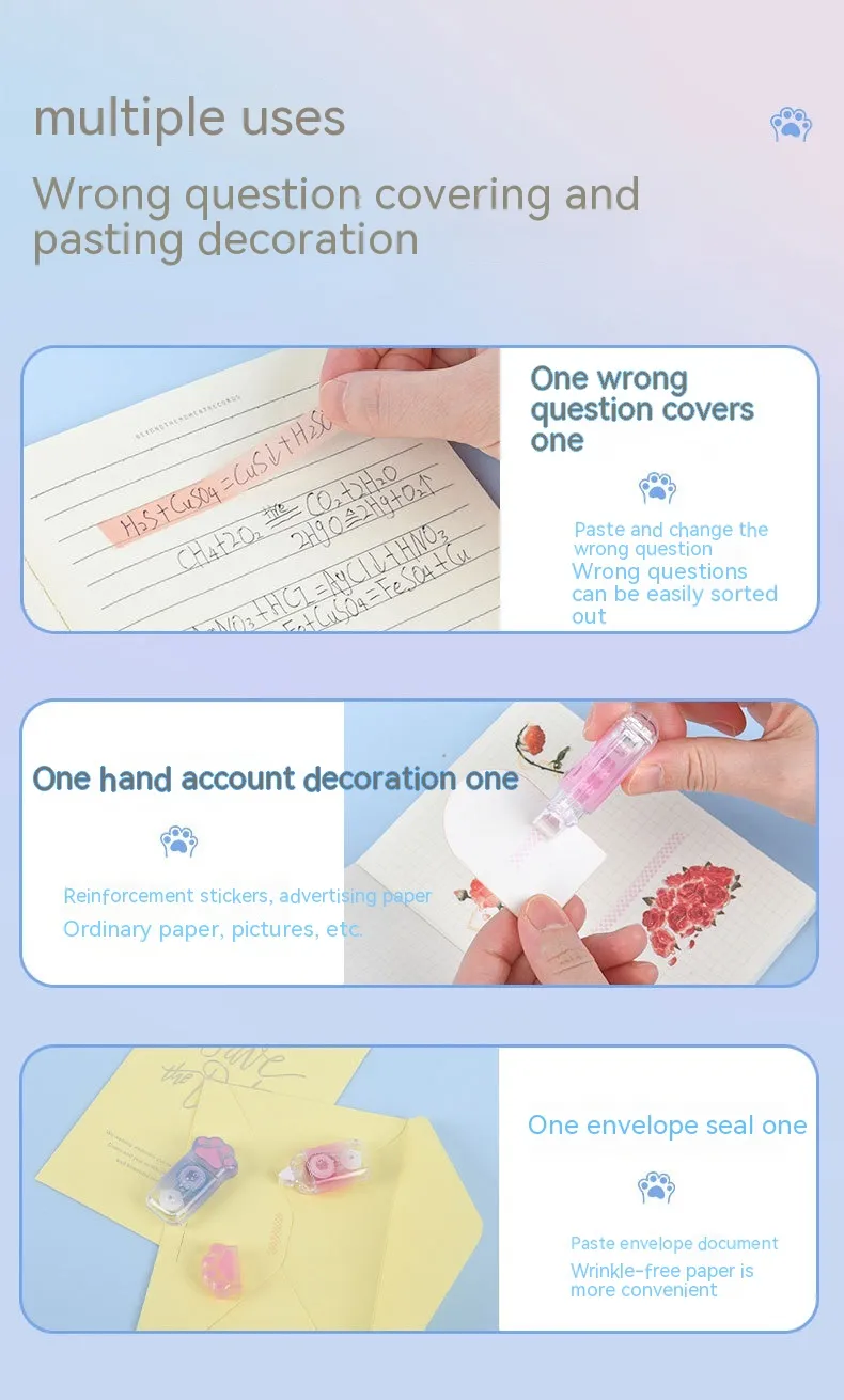 - Unique Design: Stand out with a distinctive cat paw-shaped tape dispenser that adds personality to your stationery.