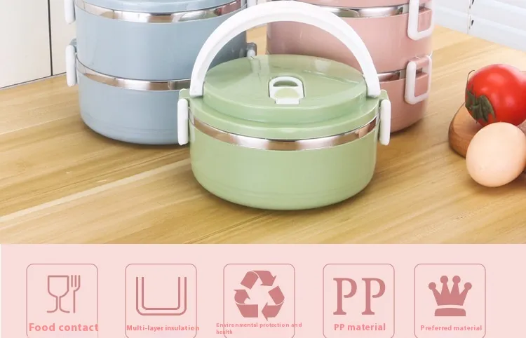 Student Compartment Multi-layer Round Stainless Steel Insulated Lunch Box
