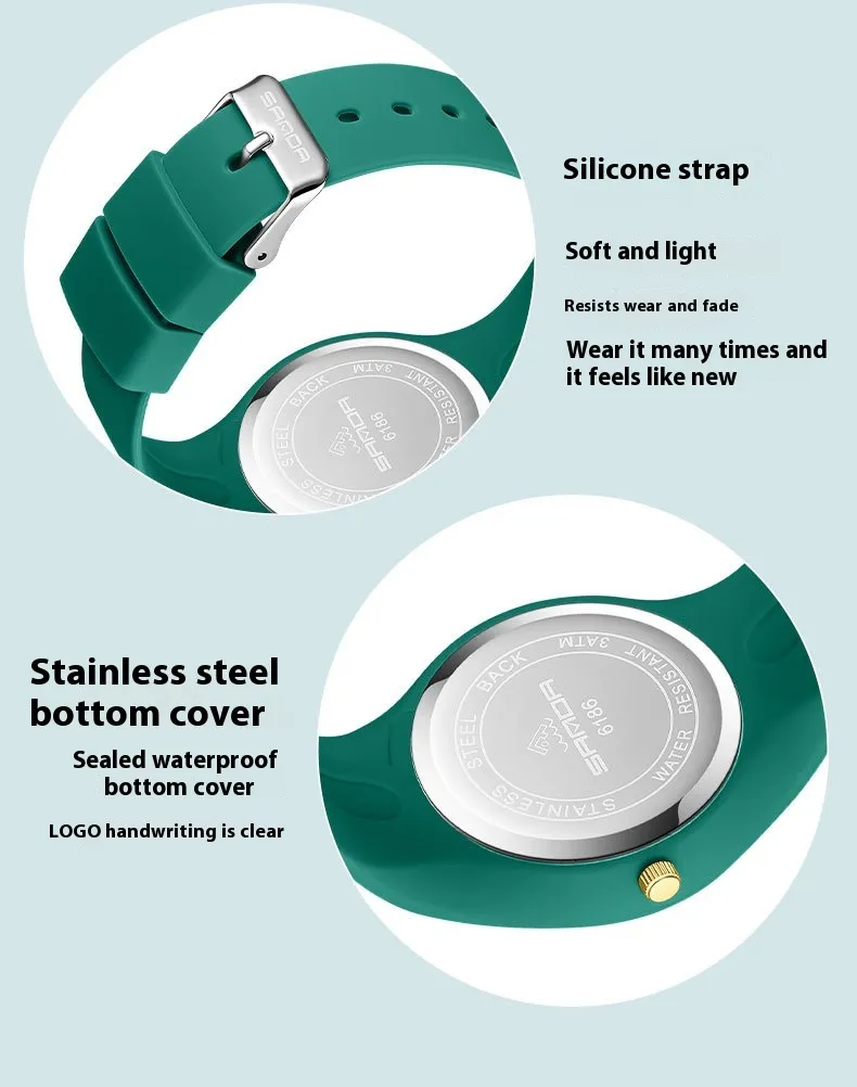 The Student Thin and Light Silicone Strap Waterproof Simple Fashion Electronic Watch is designed for students who value practicality, style, and comfort. With its sleek design, lightweight build, and waterproof construction, this electronic watch is the ideal companion for daily school activities, sports, and casual outings. Its minimalist design ensures it pairs effortlessly with any outfit, making it a versatile accessory for all occasions.
