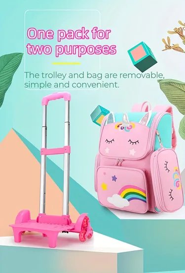 Student Trolley School Bag Girls Large Capacity Dual-Use Two Wheels Trolley Bag Detachable Dual-Use Student School Bag Lightweight To Climb Stairs