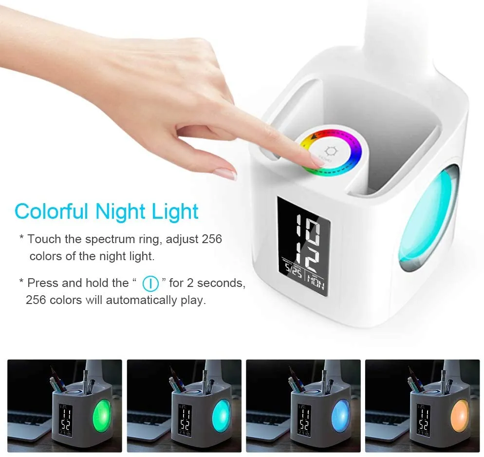 Study LED Desk Lamp USB Charging Port&Screen&Calendar&Colors Night Light Kids Dimmable Table Lamp With Pen Hold