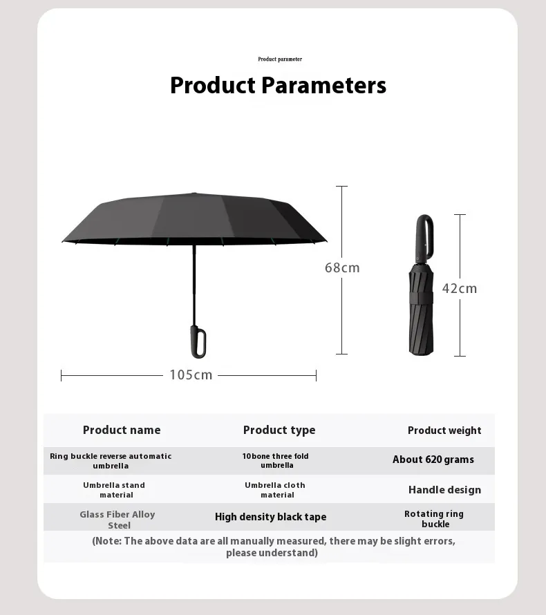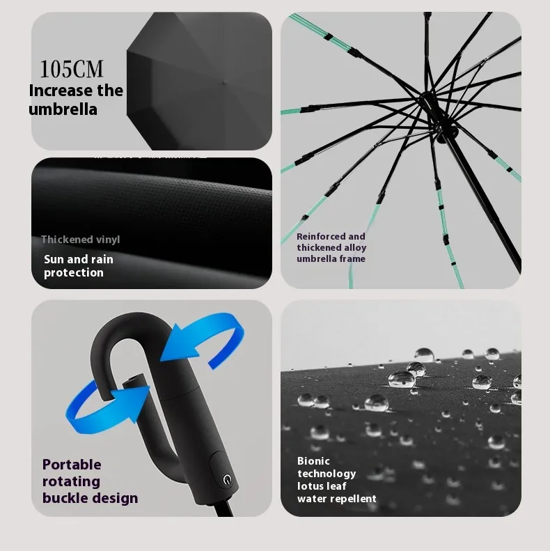 The ergonomic handle and ring buckle design simplify carrying and storage, making the umbrella practical for daily commuting and travel.