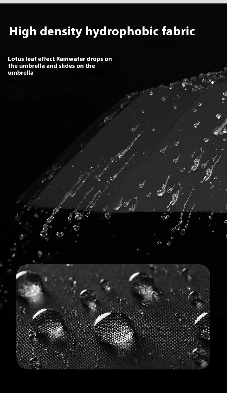 The canopy is crafted from high-quality, water-repellent fabric that provides reliable rain coverage while drying quickly after use. Its generous coverage ensures the user remains dry even during heavy downpours, while the fabric’s durability resists tearing and wear over time. This makes the umbrella suitable for daily use rather than occasional emergencies.