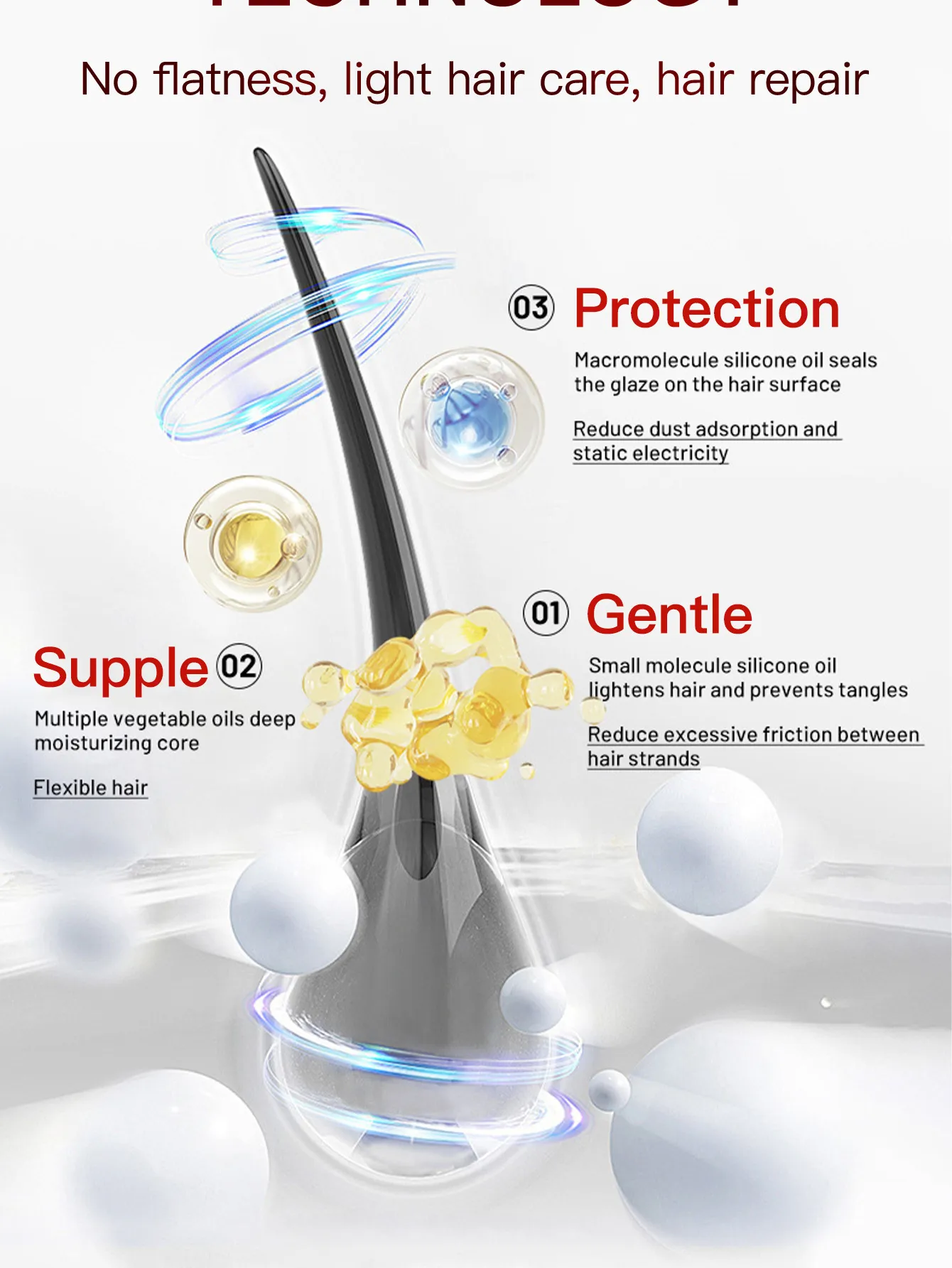 - Lightweight & Non-Greasy: Adds shine and smoothness without residue.
