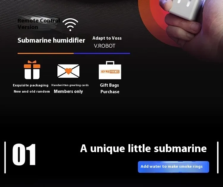 Ease of use is a key feature of the Submarine Humidifier. Simple controls allow users to operate the device effortlessly, making it suitable for daily use without complicated setup. Its compact size ensures it fits comfortably on desks, bedside tables, shelves, or nightstands without occupying excessive space.