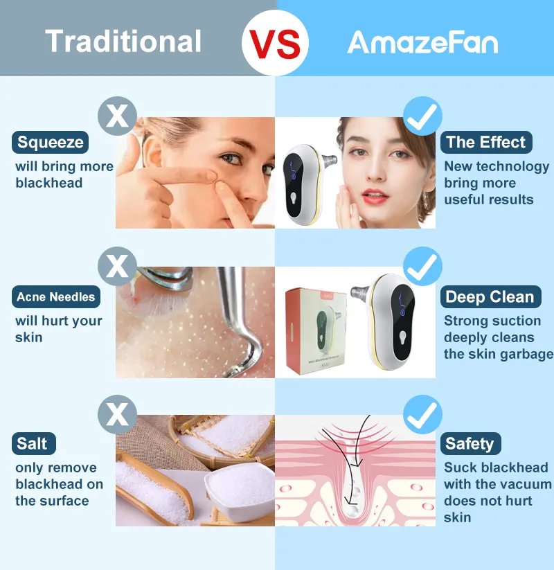 Advanced design: The latest generation of blackhead removing agents have stronger suction and deeper skin cleansing ability. After many