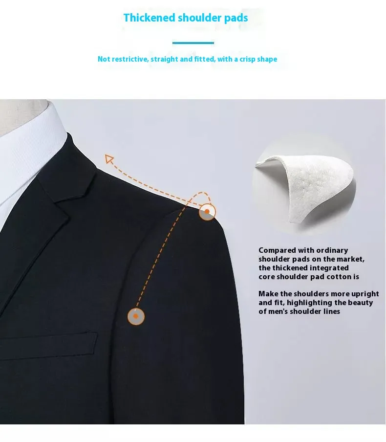 In conclusion, the Suit Set Three-piece Set Men's Korean Style Slim Fit Business is a must-have for the modern man who values both style and comfort. The slim-fit design and three-piece set provide a sleek, fashionable look that is perfect for business and formal events. Whether you're attending an important meeting or a wedding, this suit offers a complete, polished look that is both stylish and professional. Add this sophisticated suit to your wardrobe for a versatile, high-quality option that ensures you always look sharp.