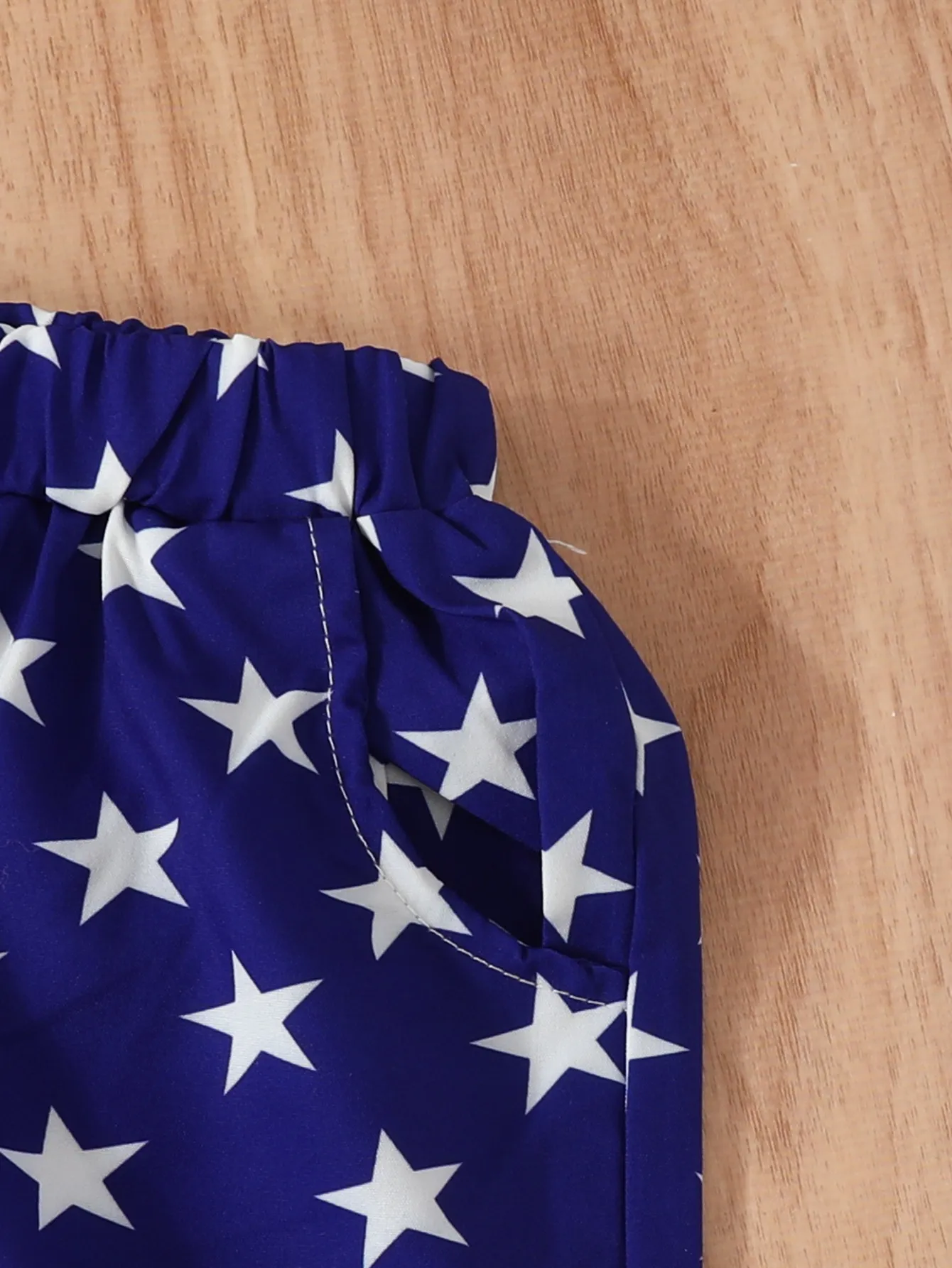The Summer Boys' Independent Japanese Star Stripe Single-breasted Short Sleeve Shorts Suit is the perfect choice for your little one this summer. This stylish set combines comfort with trendy design, making it ideal for warm weather. Featuring an eye-catching star stripe pattern, a single-breasted jacket, and a pair of comfortable shorts, this outfit offers a sophisticated yet casual look that’s perfect for any occasion, from family gatherings to casual outings.