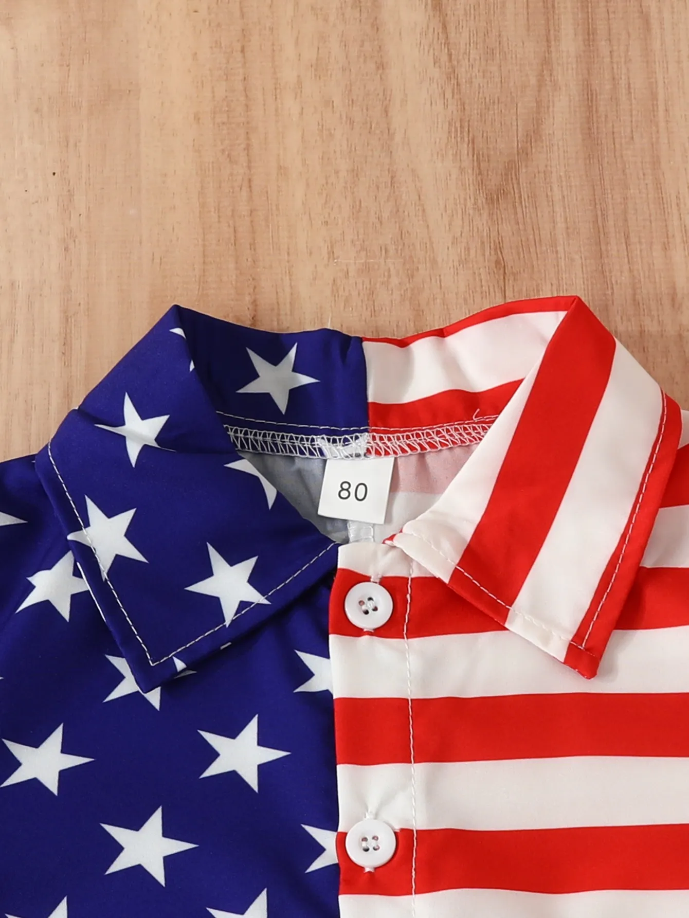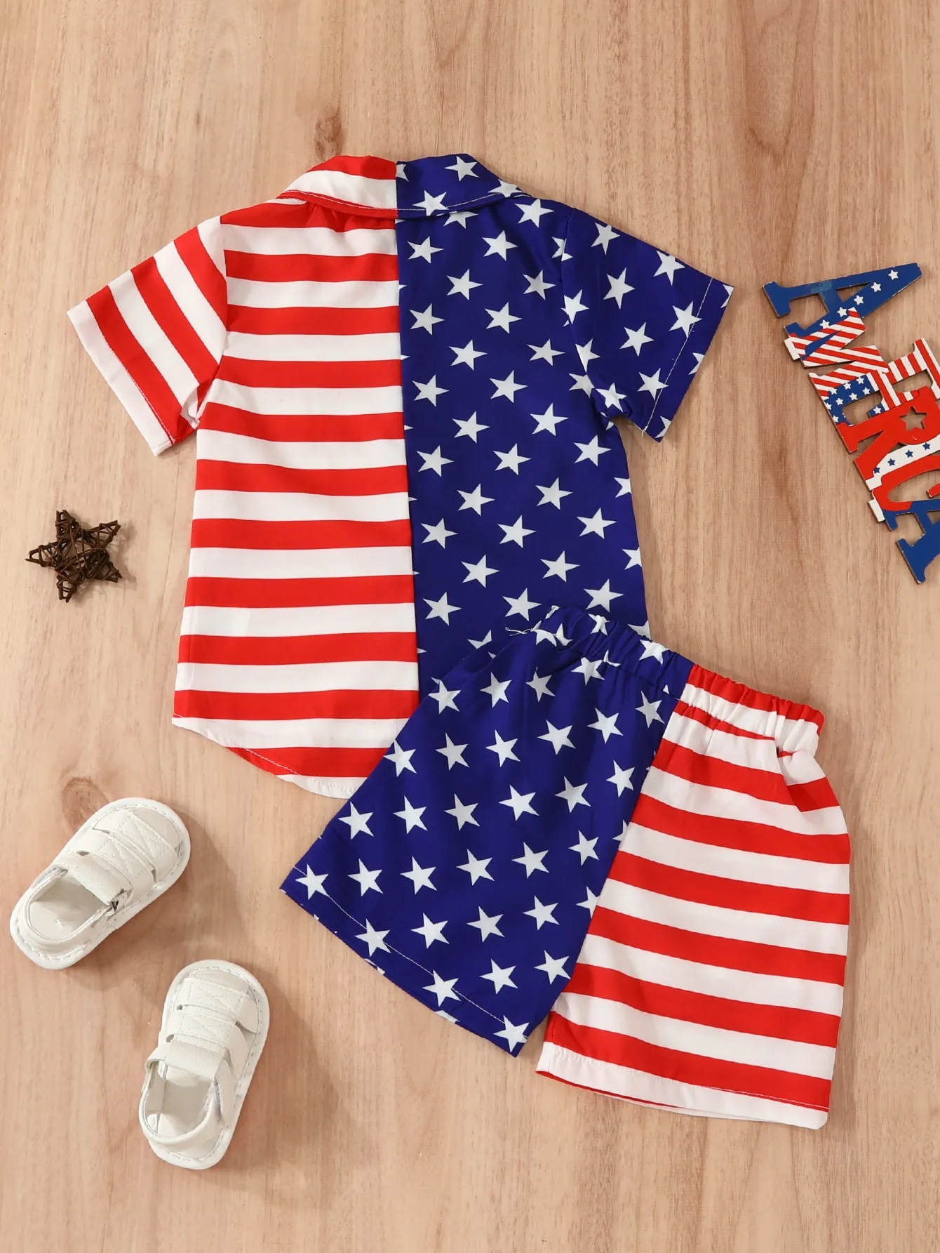 The Summer Boys' Independent Japanese Star Stripe Single-breasted Short Sleeve Shorts Suit blends a modern, fashionable style with everyday comfort. The star stripe pattern adds a playful touch to the outfit, while the single-breasted design of the jacket gives the look a smart, polished finish. The shorts provide the ultimate comfort for active boys, allowing for freedom of movement while maintaining a stylish appearance. This suit is perfect for summer events, family parties, or casual get-togethers.