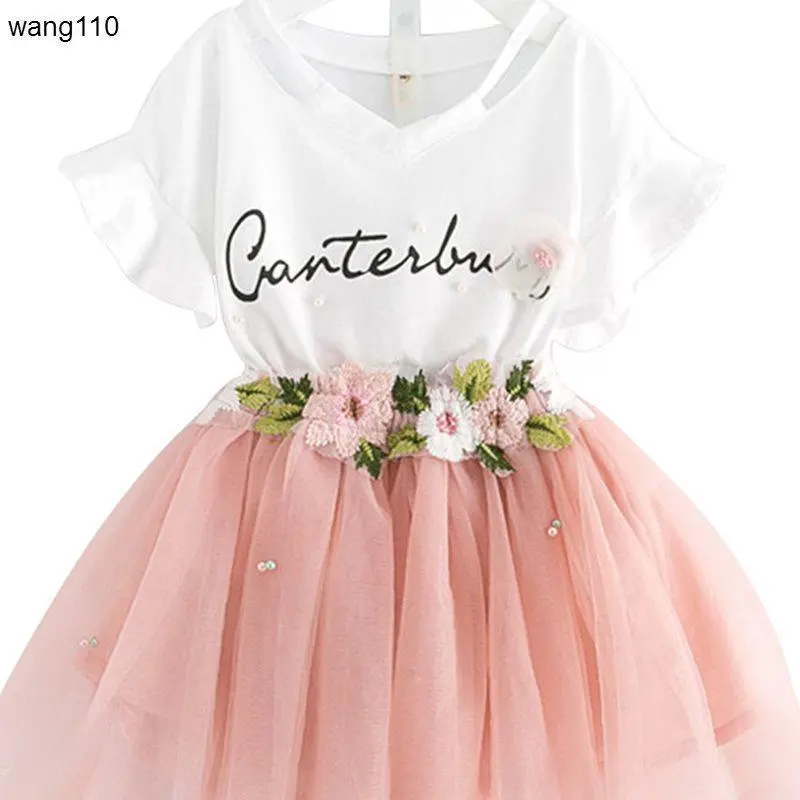 Summer Kids Girls Clothing Sets 2 pcs T-shirt Hole Pants Set