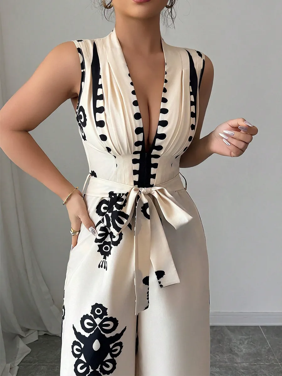 Crafted from lightweight, breathable fabric, this jumpsuit features a built-in waistband, which cinches the waist to create an elegant shape while enhancing your natural curves. The sleeveless design provides freedom of movement, making it the perfect piece for everything from outdoor gatherings to relaxed weekend activities. Whether you're enjoying a brunch with friends or heading to a day at the beach, the Summer Sleeveless Waistband Jumpsuit will keep you cool, stylish, and comfortable.