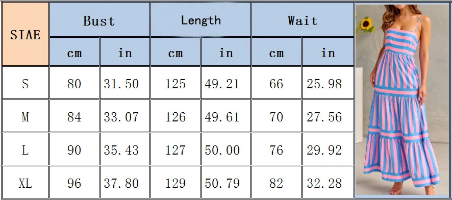 Comfort and Fit The Summer Striped Printed Suspender Long Dress is designed with adjustable suspenders to provide a customizable fit. The flowy silhouette ensures that the dress is flattering on all body types, while the soft fabric drapes beautifully, allowing you to move freely and comfortably. The dress is available in various sizes, making it easy to find the perfect fit.
