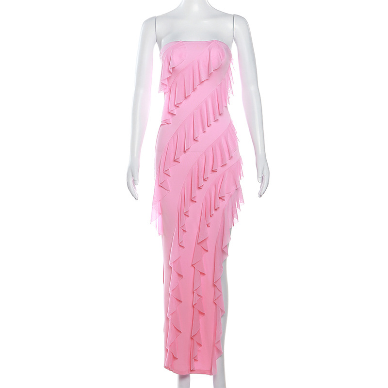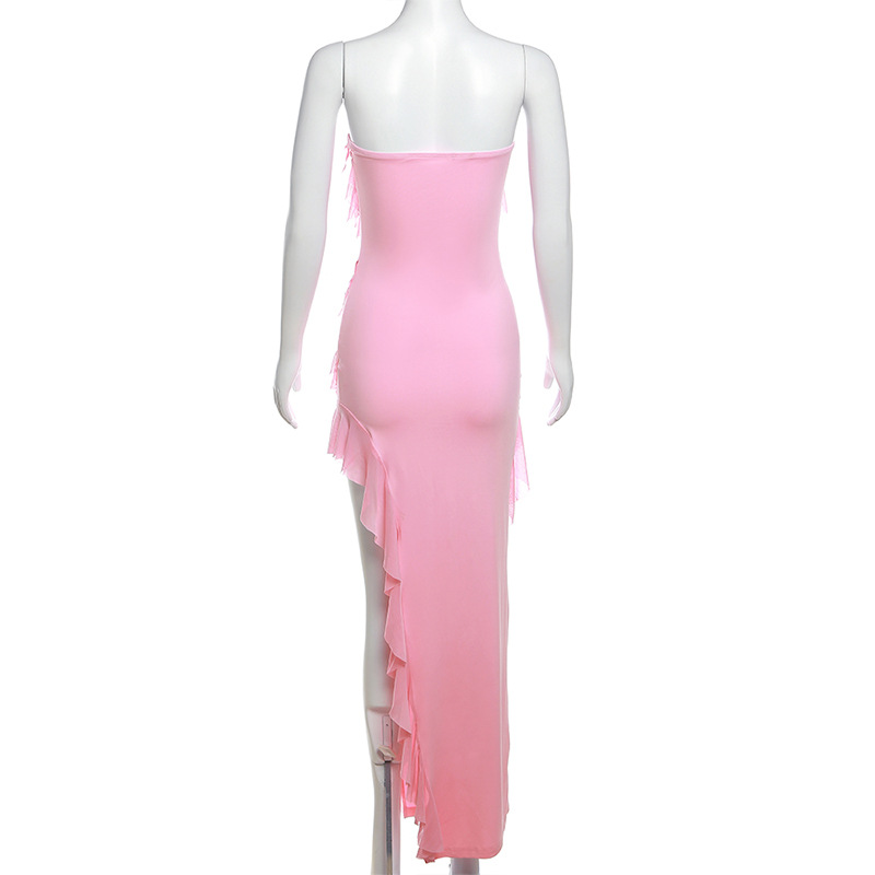 2024 Summer Trend: Skinny Women's Fashion Tube Top Backless Split Tassel Dress