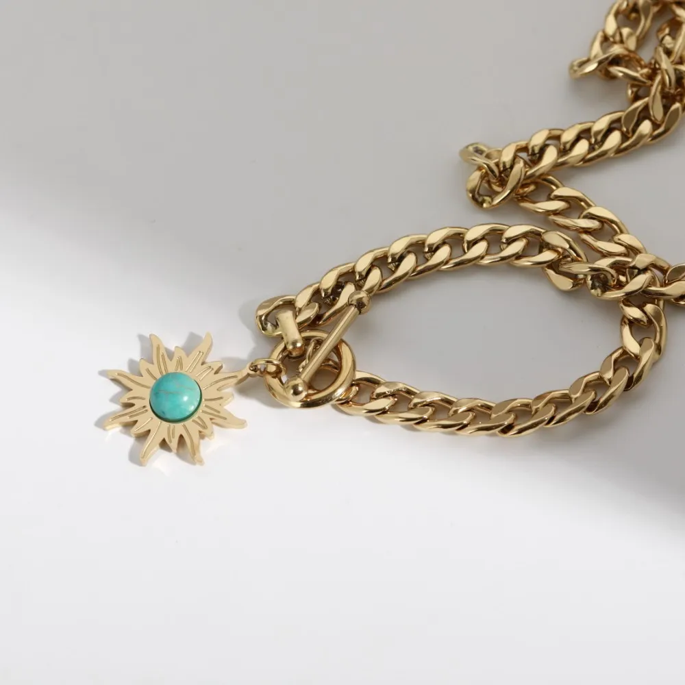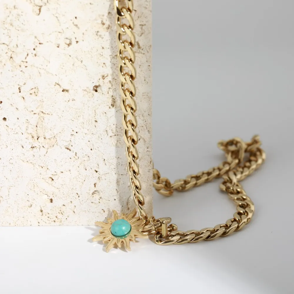 Sunflower Turquoise Pendant Titanium Steel Necklace