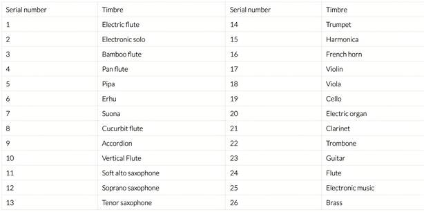Explore saxophone, flute, clarinet, synth tones, and more for creative play.