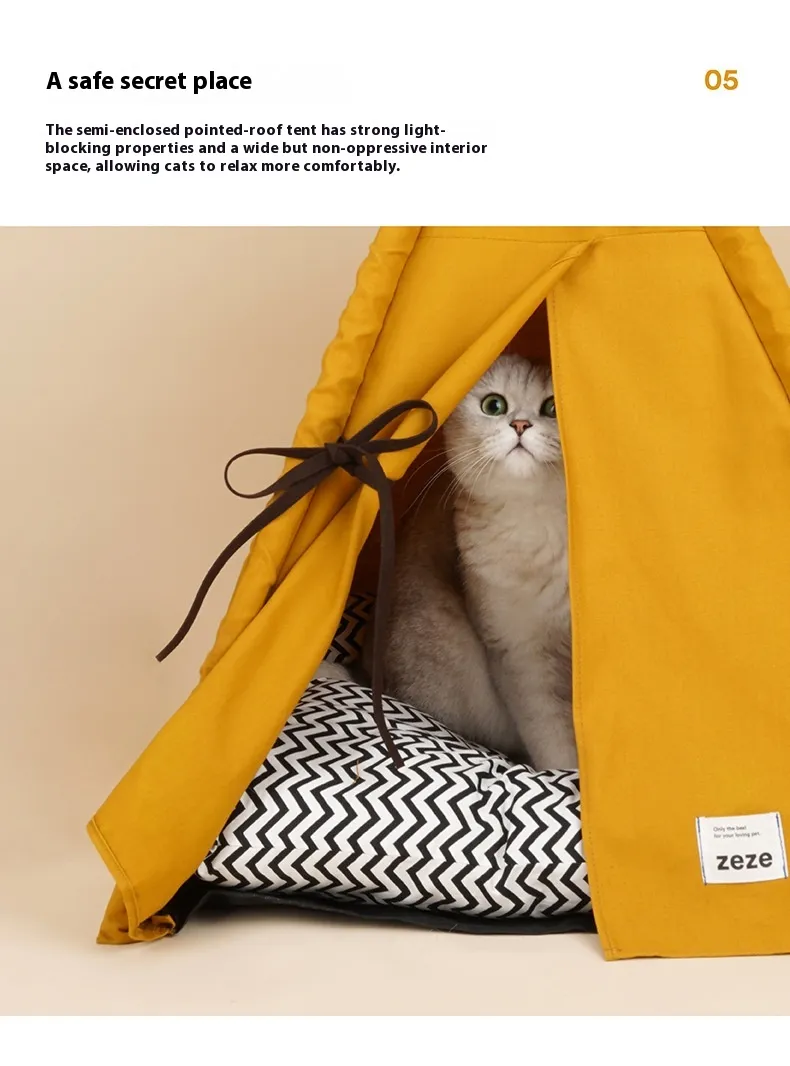 Sunset Yellow Cat Nest Pet Tent – Semi-Enclosed, Removable, Washable, and Perfect for All Seasons