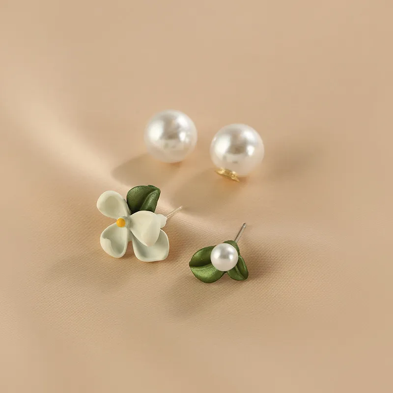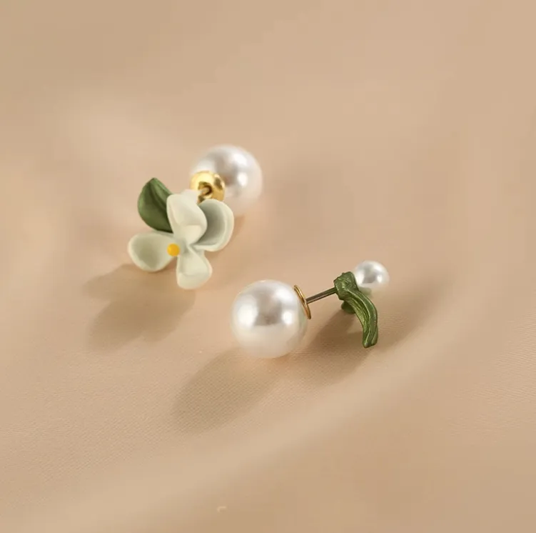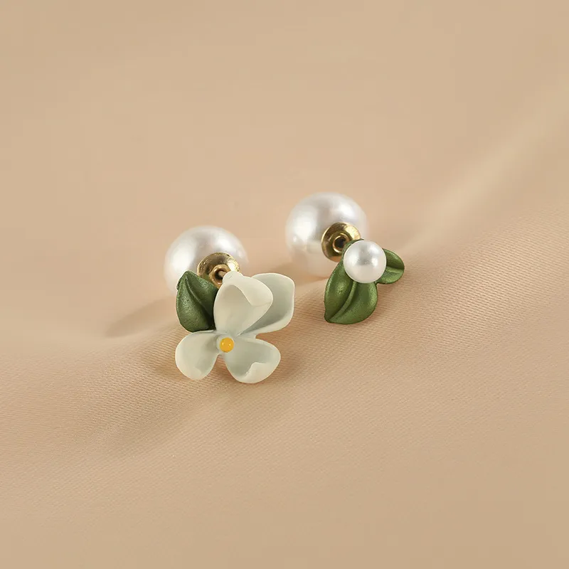 Super Fairy Mori Style Asymmetric Flower Pearl Stud Earrings