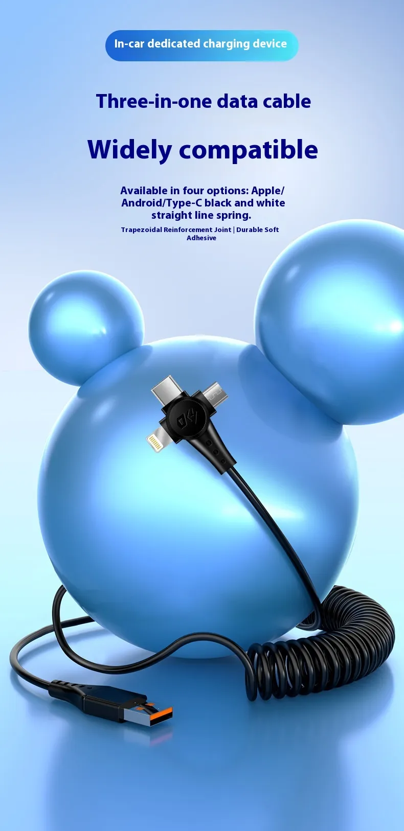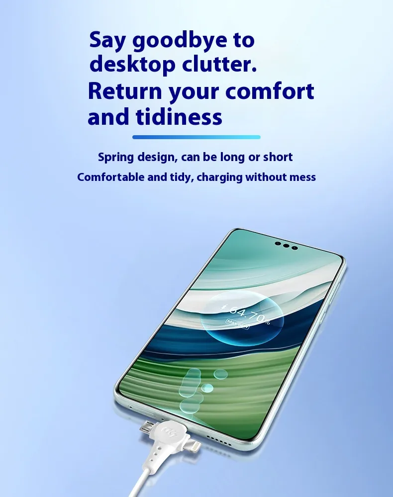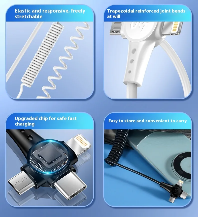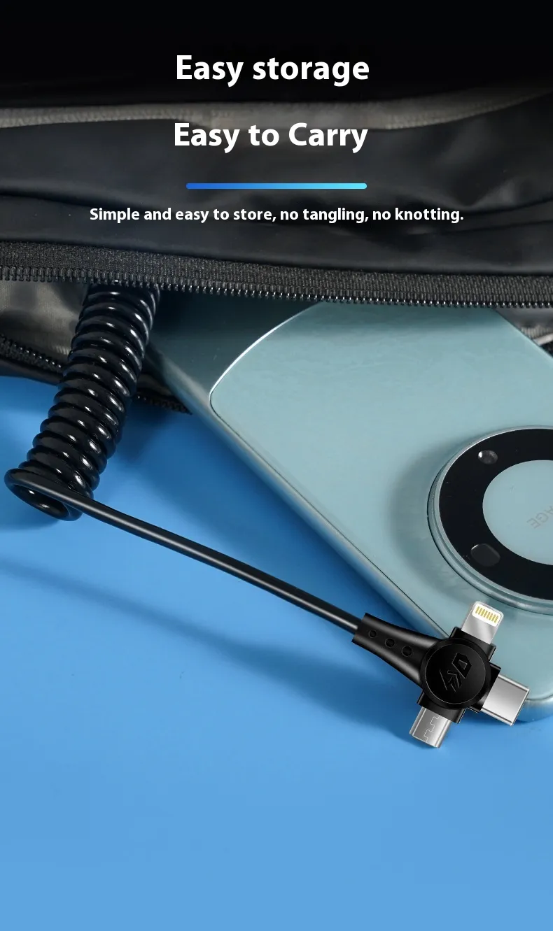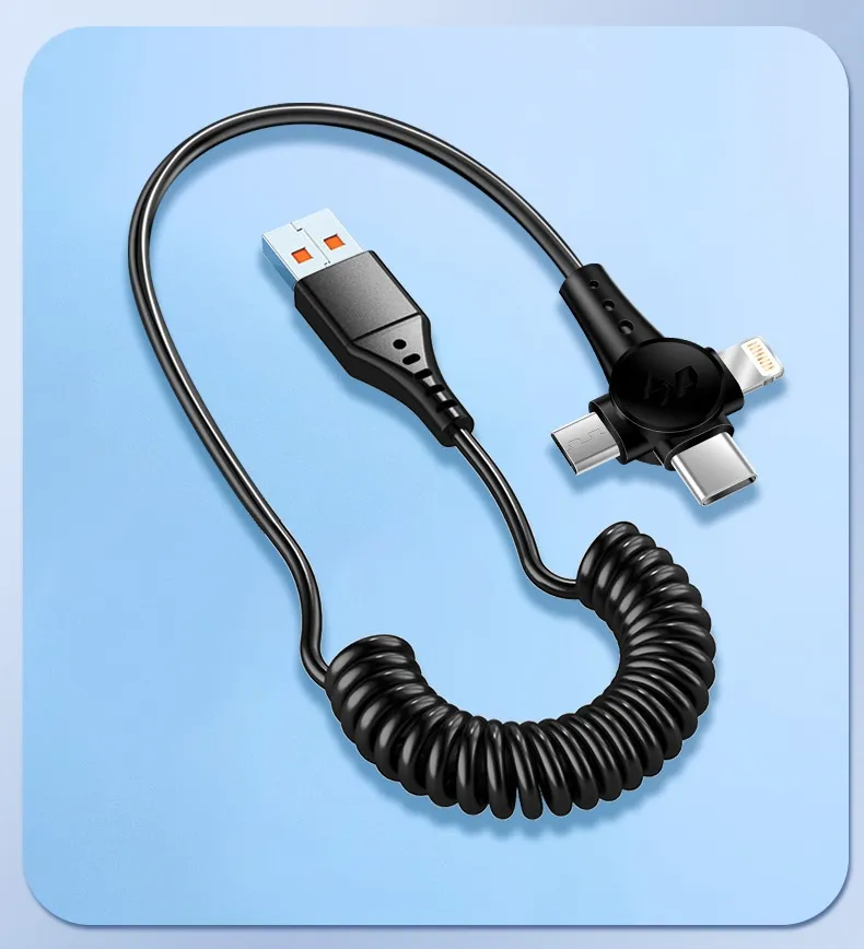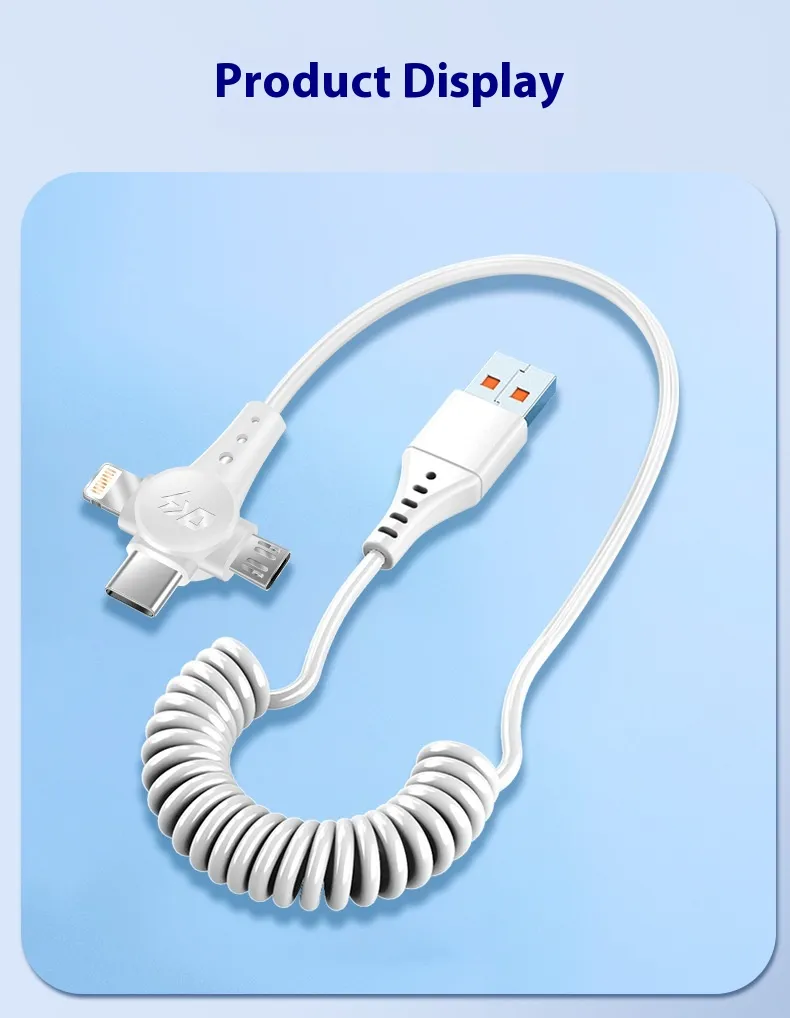 Super Fast Charge Spring Telescopic Data Cable – One Drag Three