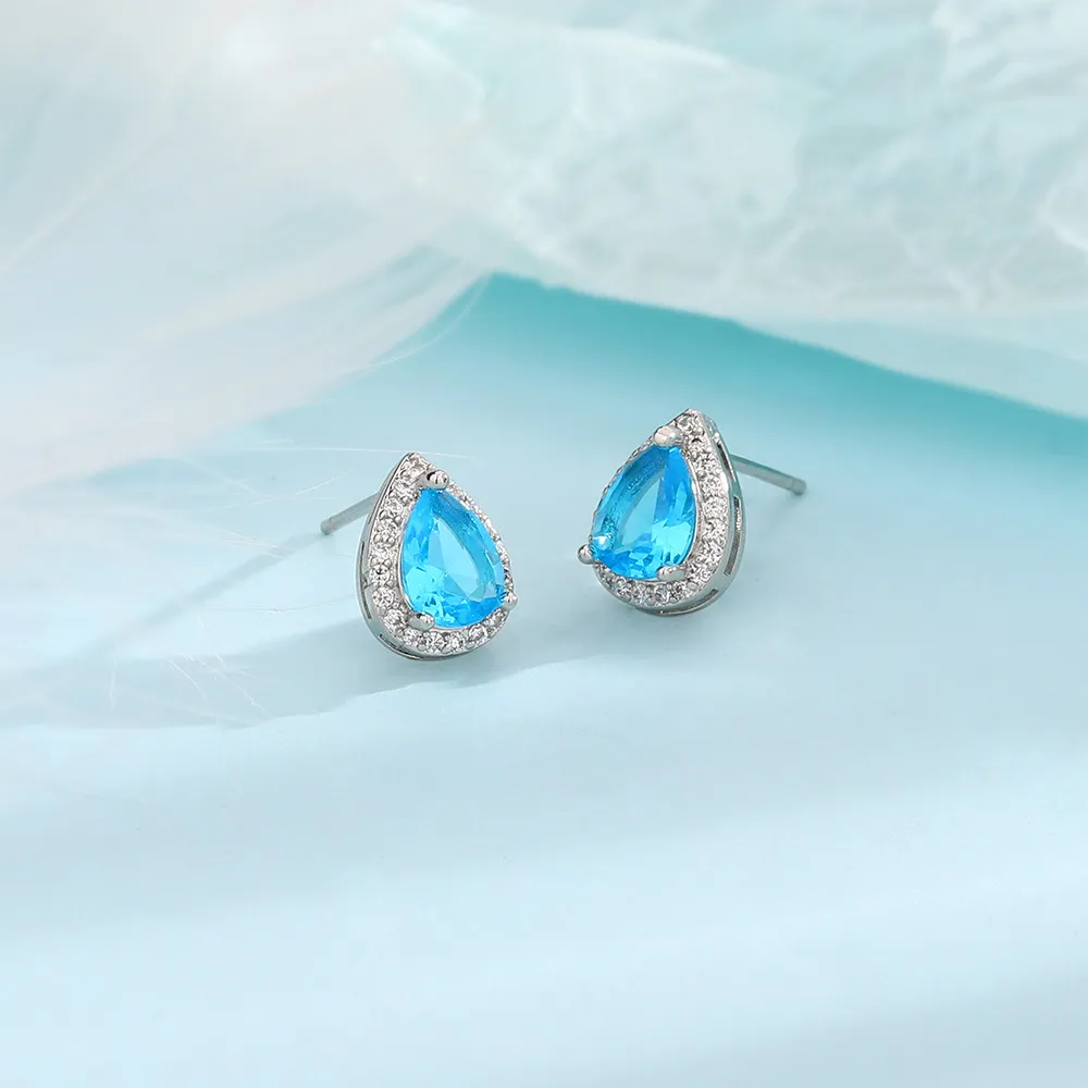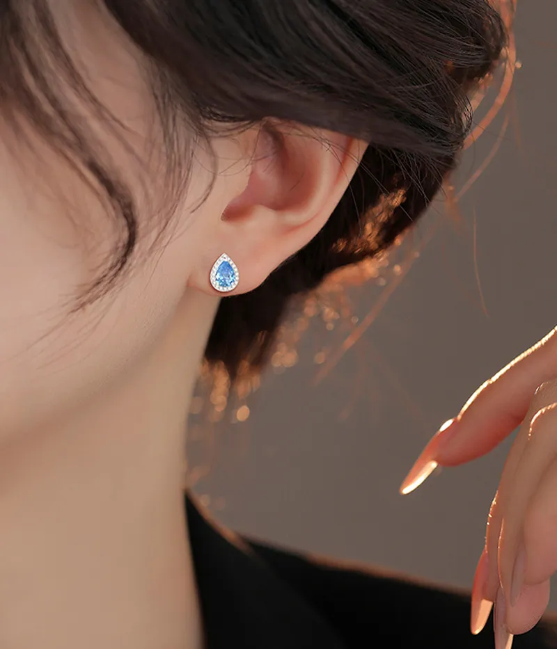 Super Flash Blue Water Drop Ear Studs French Elegance