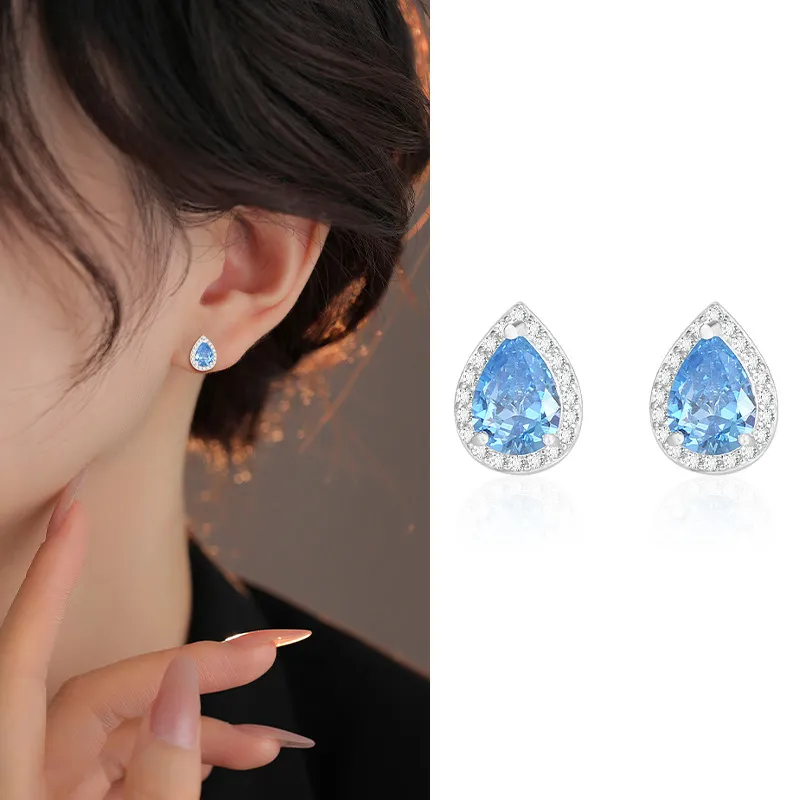 Color: Blue Diamond water drop ear studs