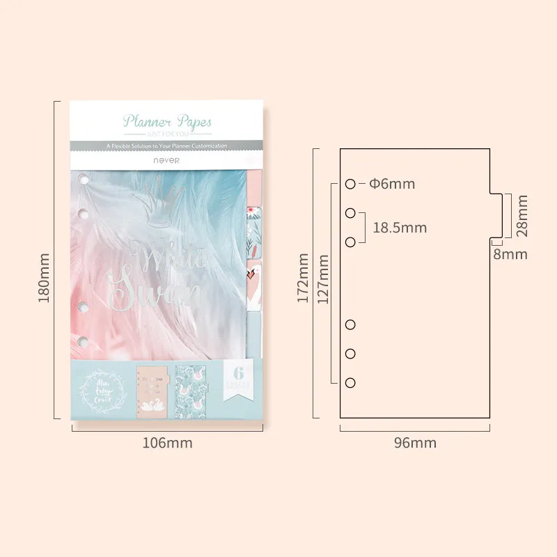 The Swan Handbook A6 Separator Page is a practical, durable, and easy-to-use tool that enhances the organization of your A6 notebooks or planners. With its high-quality material, color-coded options, and simple insertion process, it makes organizing your work or study notes a breeze. Whether you’re a student, a professional, or someone who just enjoys keeping their thoughts in order, this separator page is the perfect addition to your stationary collection.