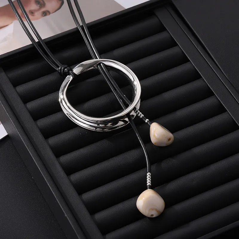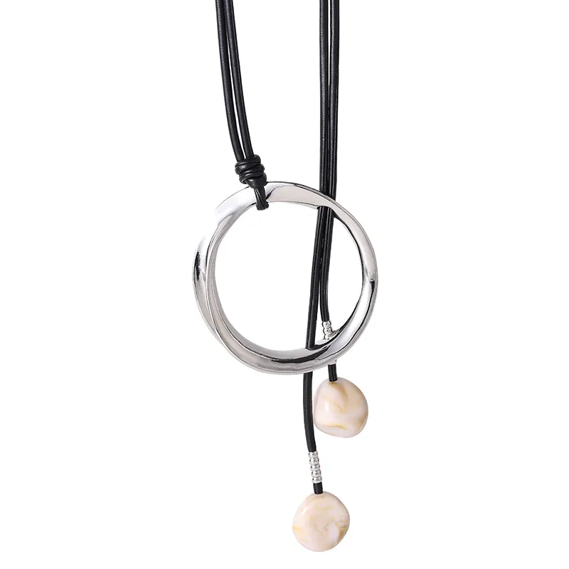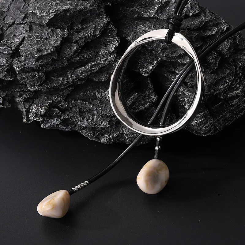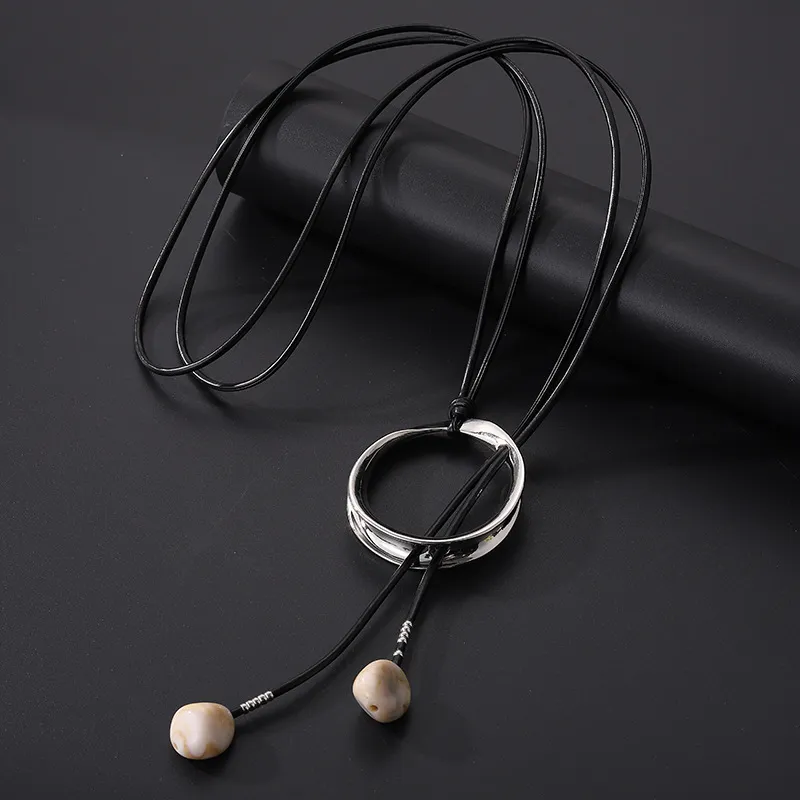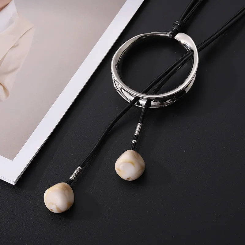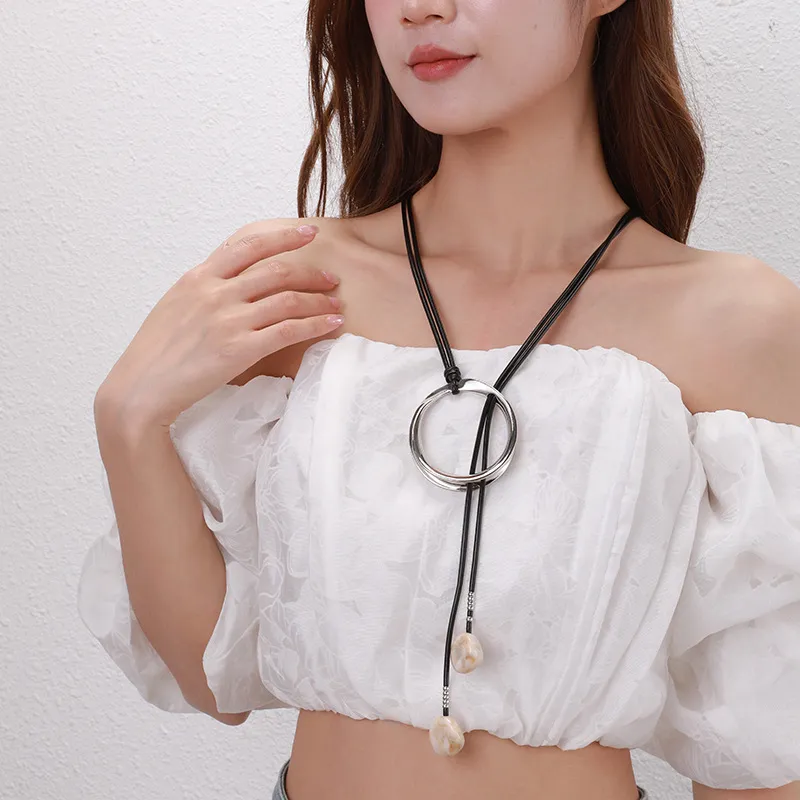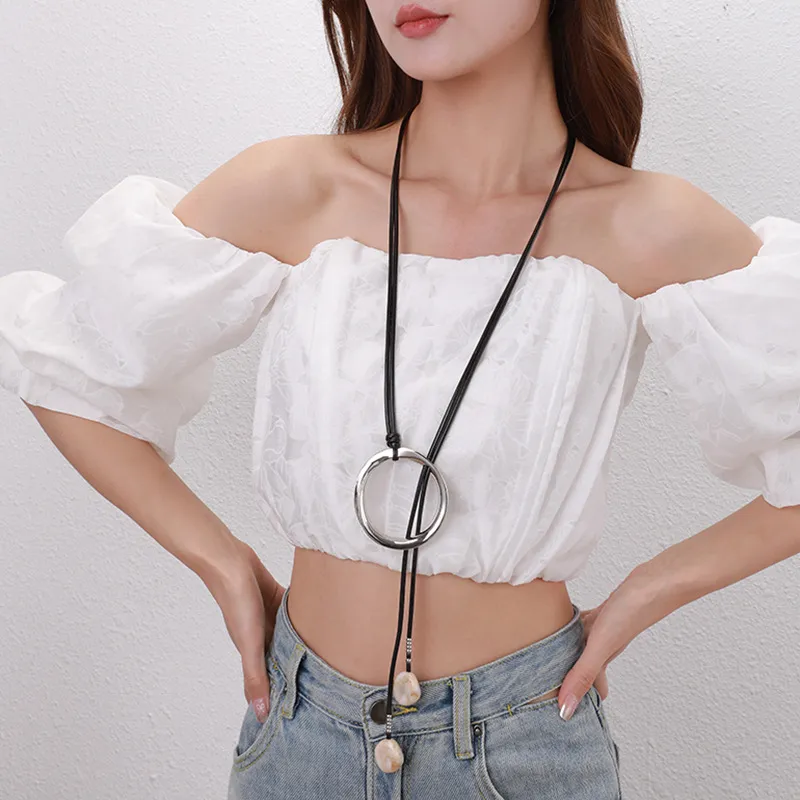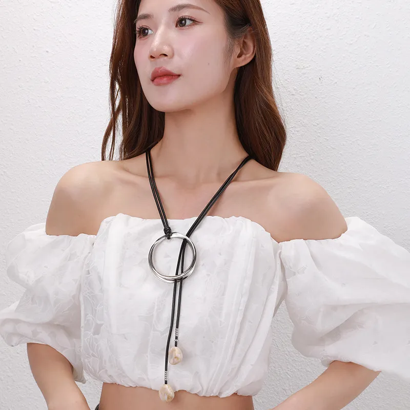 Sweater Long Chain Women's Retro Leather Rope Exaggerated Necklace: Bold, Stylish, and Statement-Making Jewelry