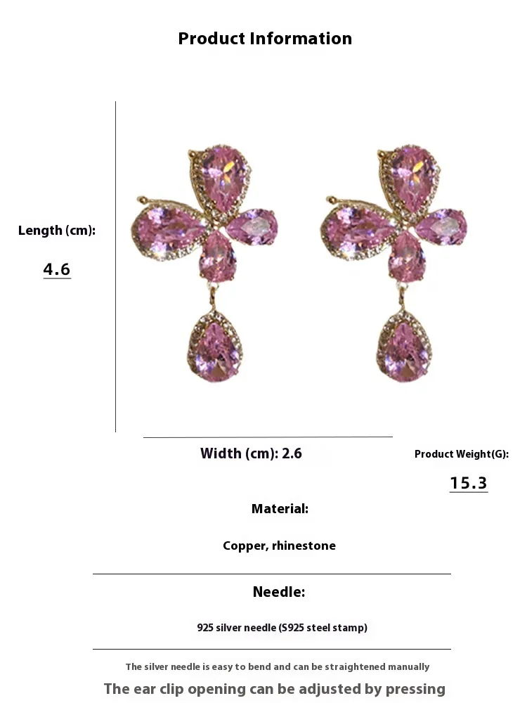 Color: Silver Needle pink butterfly water drop earrings