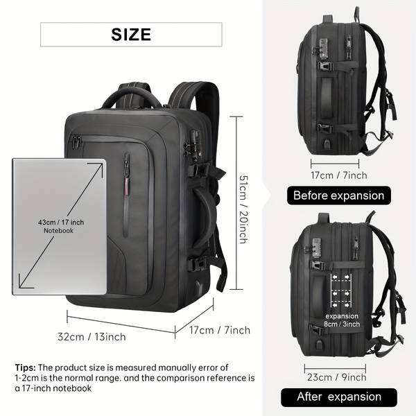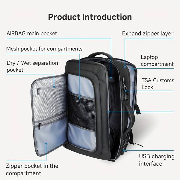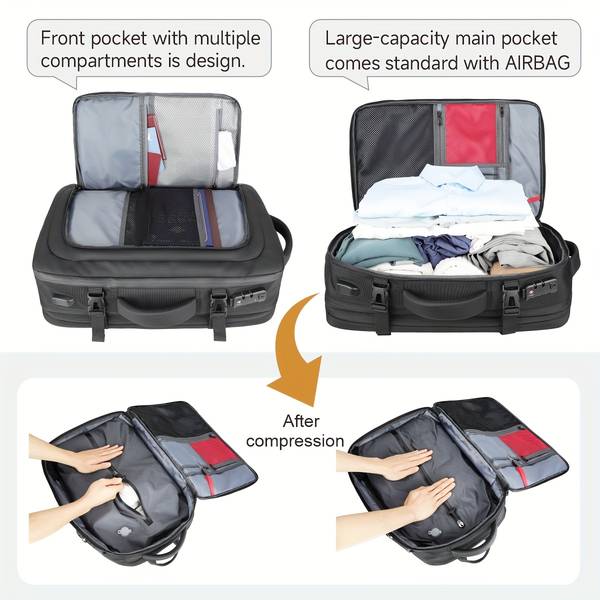 With the Vacuum Pump & AirBack Compression System, this backpack allows you to store more items in a smaller space. Whether you're packing for a business trip or a weekend getaway, you’ll be able to carry everything you need without worrying about bulky luggage.