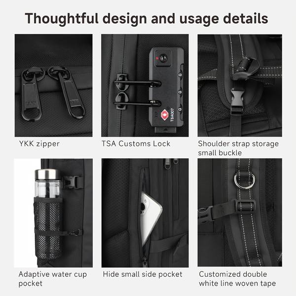 Featuring a robust anti-theft design, this backpack keeps your belongings safe during travel. The clever design and secure zippers ensure that your items are protected from theft, providing added security when navigating crowded areas.