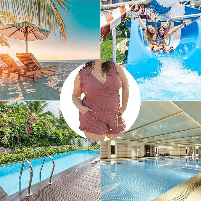 The Swim Romper is features with crossed v-neck, ruffle shoulder and hem design, nursing-friendly for moms and creates a flattering look in style, ruffled sleeves and shorts come for a sophisticated take on a tropical-inspired look.