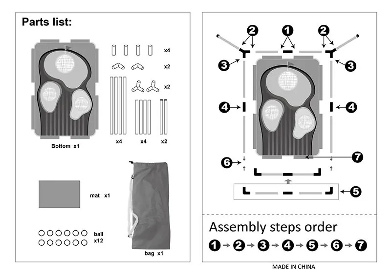 Accessories: tube rack + cloth cover + 1 straw mat + 1 handbag + 12 balls + instruction manual