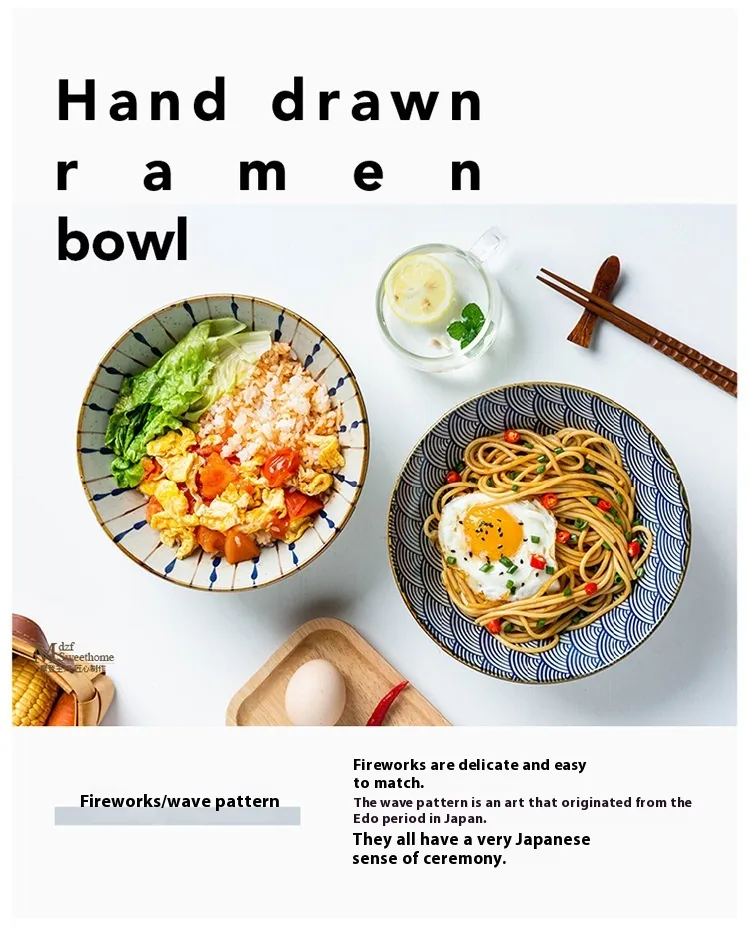 Tableware Ceramic Noodle Bowl Large Bamboo Hat Salad Bowl
