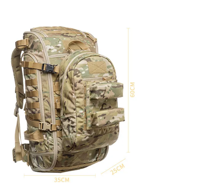 Despite its compact design, the Tactical Army Camouflage Backpack offers a surprising amount of storage space. It features multiple compartments for organizing items like laptops, tablets, clothes, and camping gear, as well as smaller pockets for keys, wallets, and phones. The large main compartment is perfect for holding bulkier items like jackets or sleeping bags, while the exterior MOLLE loops can hold everything from a water bottle to a flashlight or multitool.