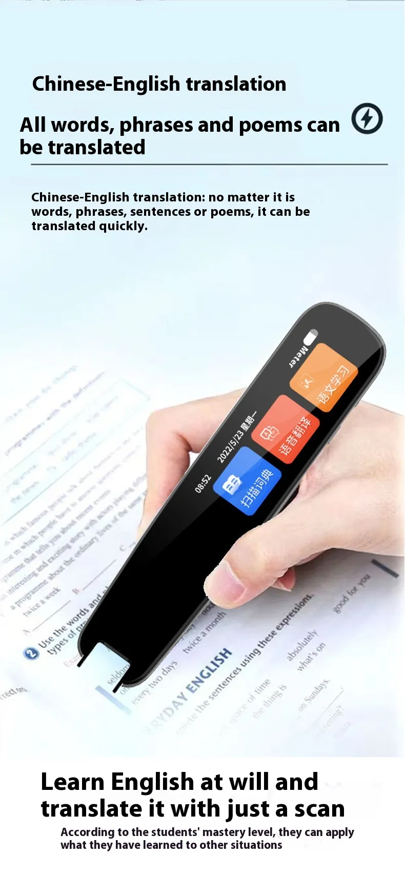 Real-time Pronunciation and Voice Feedback: Scan a word or sentence, and the pen will provide real-time pronunciation and