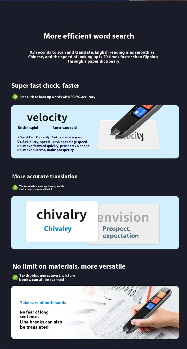 Fast and Accurate Scanning: The pen uses advanced optical scanning technology to accurately read and translate text,