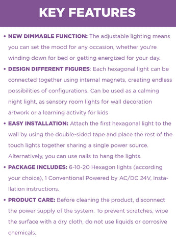 With a few simple taps, these lights have the ability to transform any space into a stimulating, enjoyable and sensory room for kids, providing visual stimuli that can capture kids' attention and interest. Simply swipe across the areas you want to turn on and swipe again to turn off.