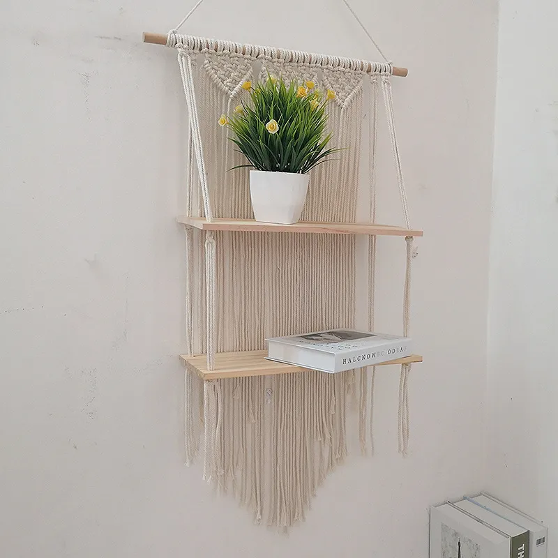 Tapestry Two-Layer Shelf Hand-Woven Nordic Bohemian DIY Wall Shelf: A Stylish Addition to Your Home Décor