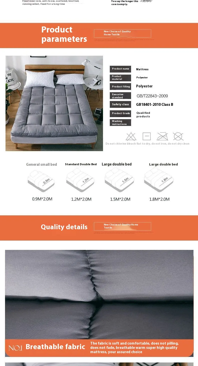 Size specifications: 0.9mx1.9m student dormitory, 0.9mx2m student dormitory, 1.2mx2m bed, 1.5mx1.9m bed, 1.5mx2m bed, 1.8mx2m bed, 2.0mx2.2m