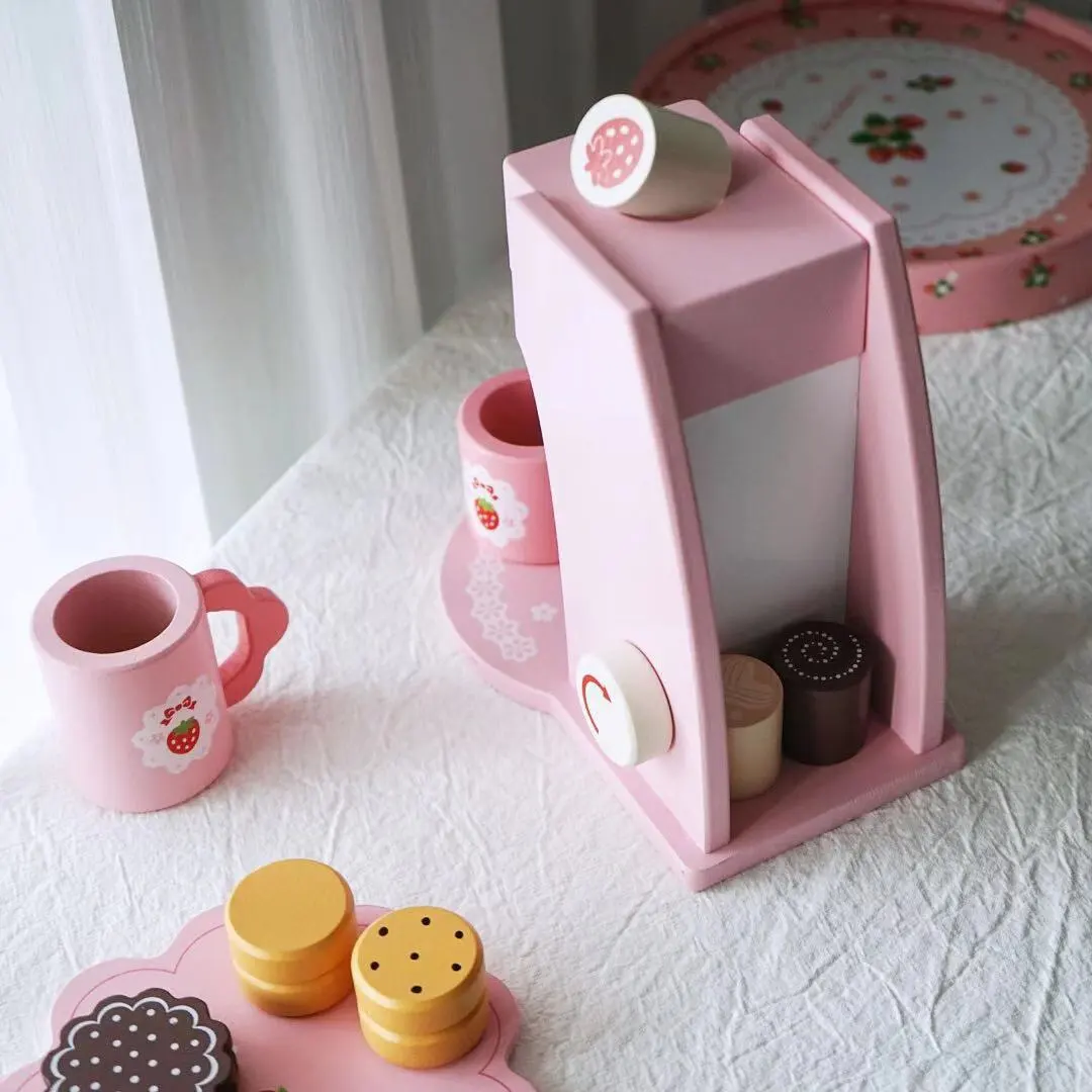 Teapot Birthday Cake Coffee Machine Wooden Kids Toys