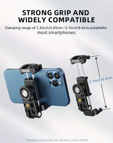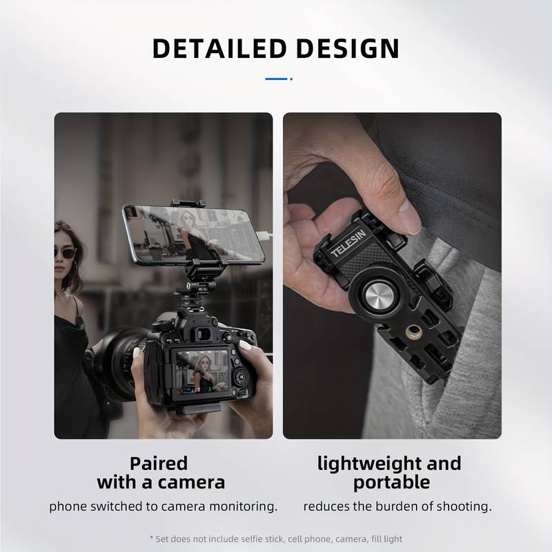 The TELESIN Horizontal and Vertical Mobile Phone Clip is designed to meet the needs of content creators, vloggers, photographers, and live streamers who require a stable, versatile, and durable phone mount. Whether you’re filming a vlog, streaming live on social media, or taking professional-quality photos, this phone bracket provides the flexibility and stability you need to capture your content perfectly. The cold shoe clip for accessories further enhances its usability, making it an all-in-one solution for your photography and broadcasting needs.