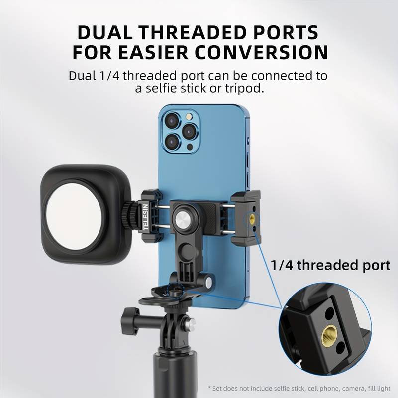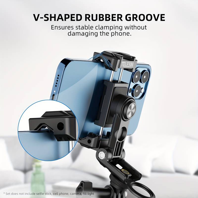 TELESIN Horizontal and Vertical Mobile Phone Clip – 360° Rotating Phone Bracket for Photography, Vlogging, and Live Streaming