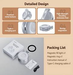 The magnetic adhesive ring allows the light to easily attach to your phone, providing hands-free operation while recording or participating