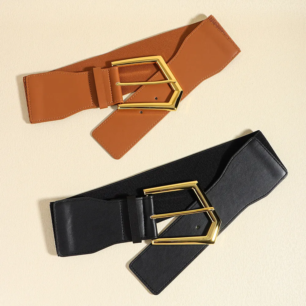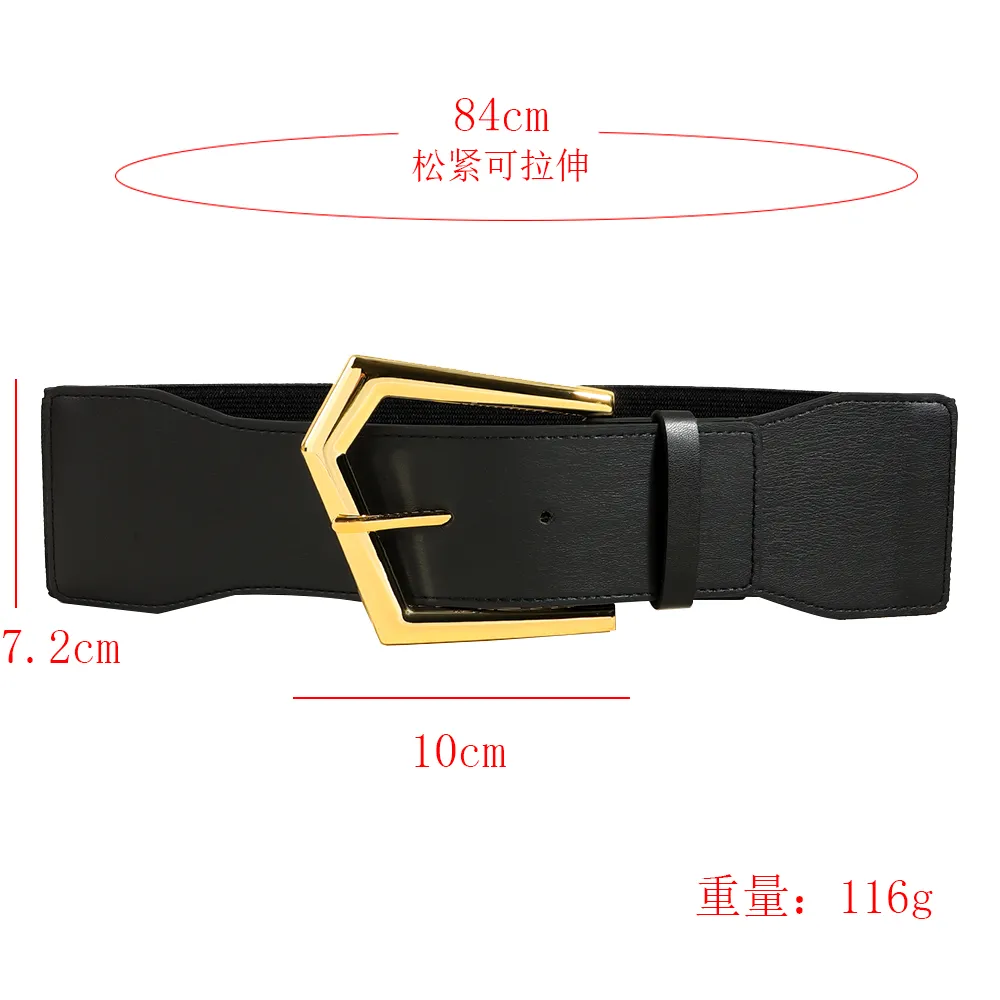 Temperament Ladies Elastic Black Stretch Metal Belt Fashion Embellished Coat Skirt Waist Cover