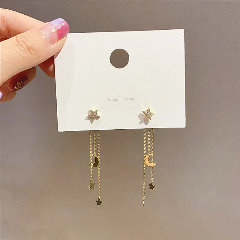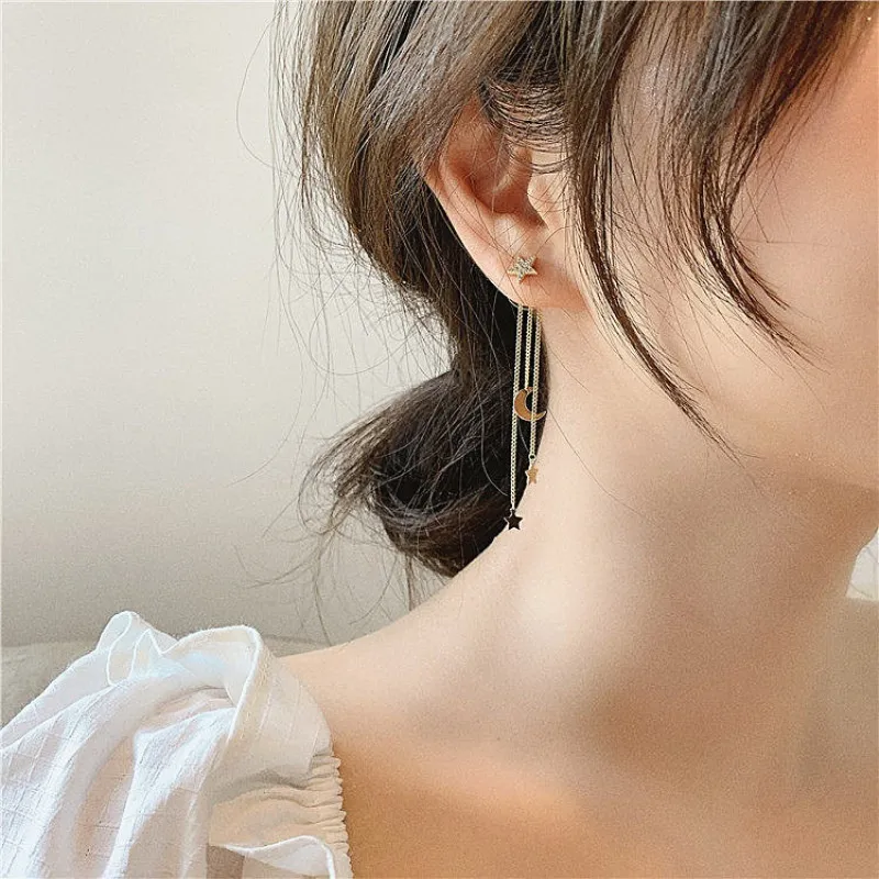 Temperament Star Moon Long Fringe Earrings