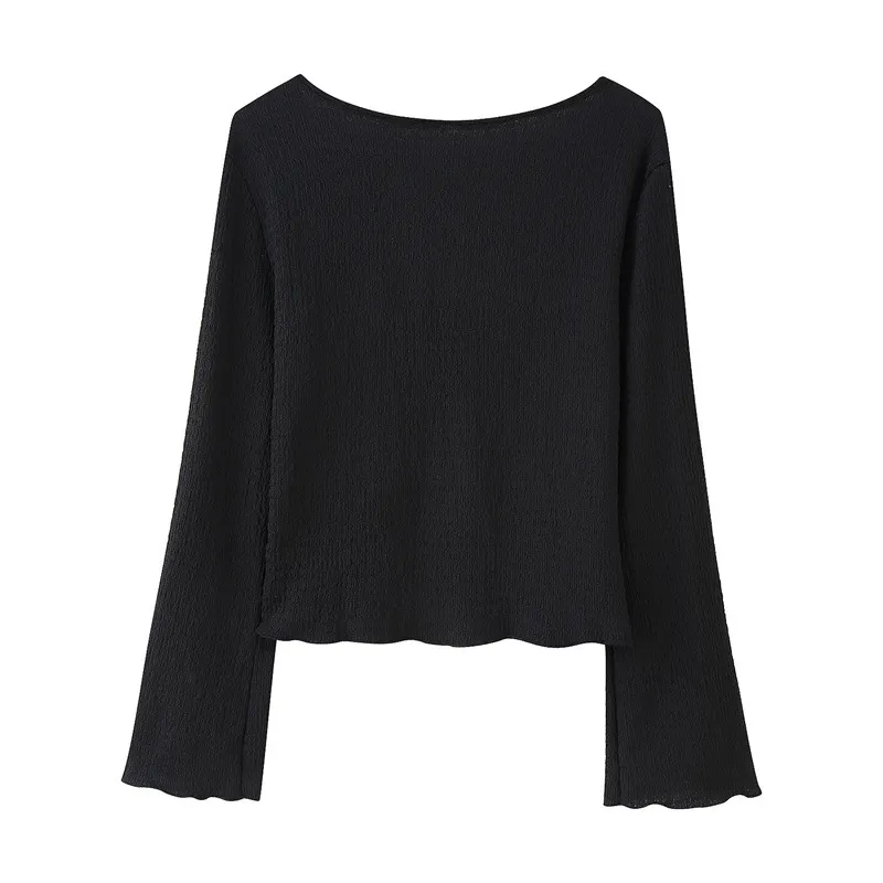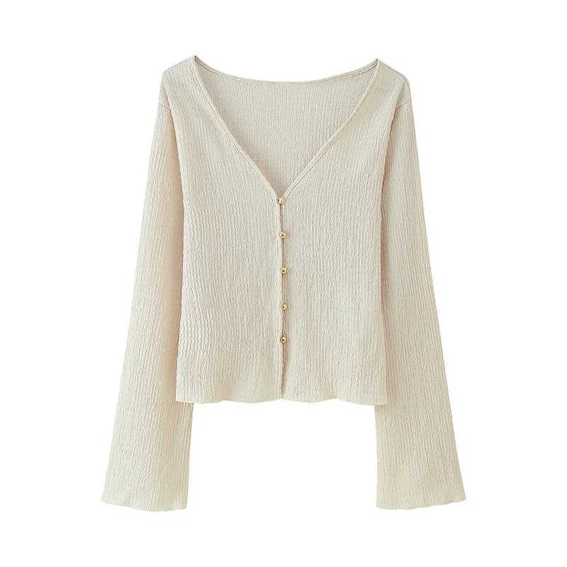 Texture Sense V-neck Long Sleeve Top & Baggy Straight Trousers Suit – Effortless Chic Comfort
