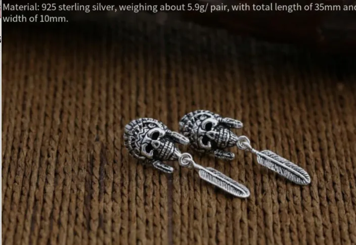 Why Choose Thai Silver Skull Feather Hanging Stud Earrings?